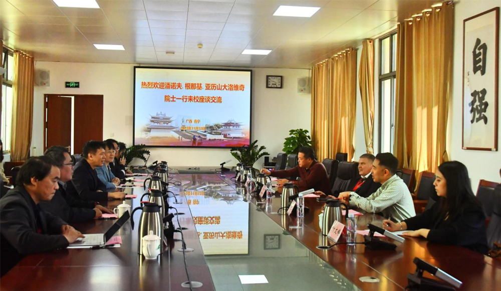 肖健代表学校对潘诺夫.根那基.亚历山大洛维奇一行的来访表示欢迎,并简要介绍了学校情况及办学特色。潘诺夫.根那基.亚历山大洛维奇对我校的热情接待表示感谢,表达了本次来访的主要目的,希望今后双方在人才培养、科学研究等方面加强合作,实现互利共赢。