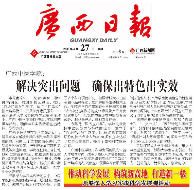 《广西日报》:解决突出问题 确保出特色出实效