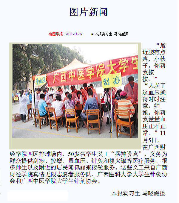 《南国早报》报道我院大学生义诊活动