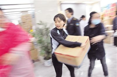 20分钟后,在志愿者和记者的帮助下,百余件药品和器械顺利地存放至县医院不同的科室里,而此时的陈文斗双眼通红,头顶和身上的军装早已湿透,妻子更是因为感冒一时间喘不上来气,在一旁剧烈地咳嗽。