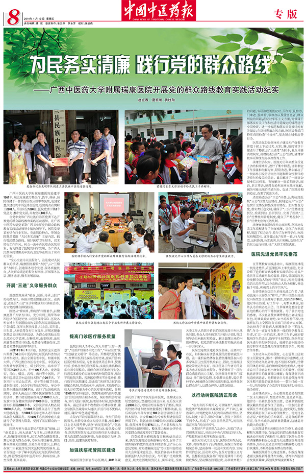 《中国中医药报》专版报道瑞康医院开展党的群众路线教育实践活动情况