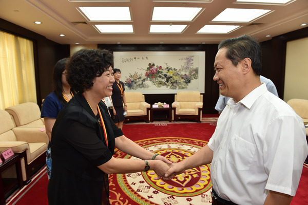 20149 10日,自治区党委书记、自治区人大常委会主任彭清华在邕会见参加全国教育系统先进集体和先进个人表彰大会载誉归来的广西中医学校校长吴彬(此图为编者所加)。