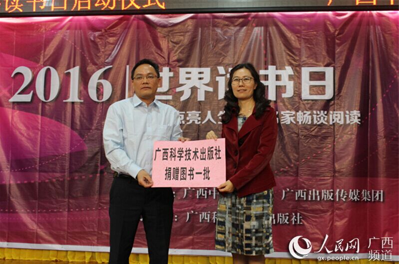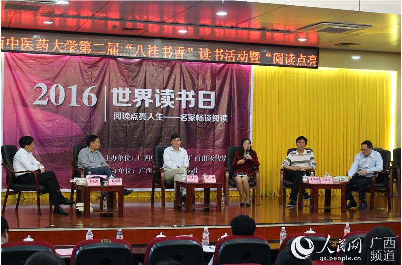 人民网南宁4月24日电 今年的4月23日是第21个世界读书日。当天,广西科学技术出版社与星空彩票老版本下载联合举办的“阅读点亮人生——名家畅谈阅读”2016世界读书日系列活动在星空彩票老版本下载图书馆举行,500多人参与其中。