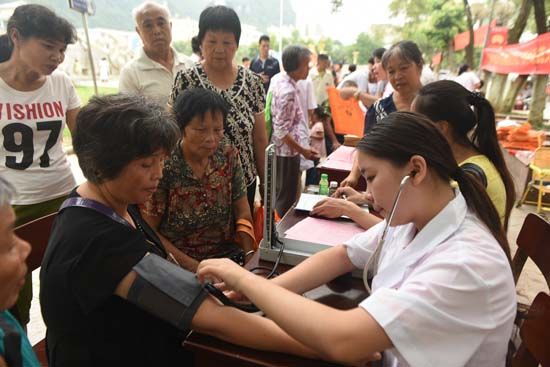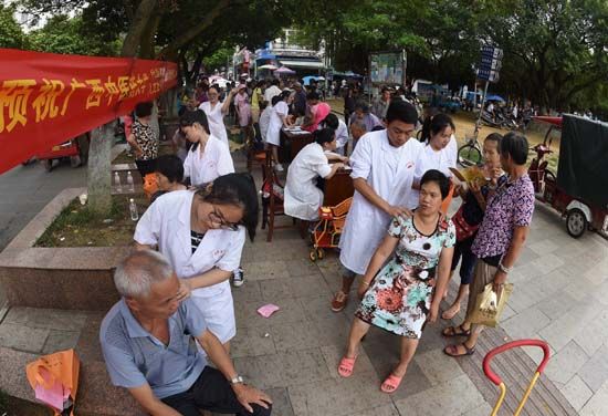 7月15日,星空彩票老版本下载的大学生志愿者来到罗城仫佬族自治县民族文化广场开展义诊活动,为仫佬山乡城乡居民进行中医推拿、穴位针灸等义诊服务,把学到的知识运用于实践,服务社会,丰富假期生活。韦如代 蒙增师 摄