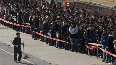 上海大学生凌晨排队求职愿意接受"零工资"_
