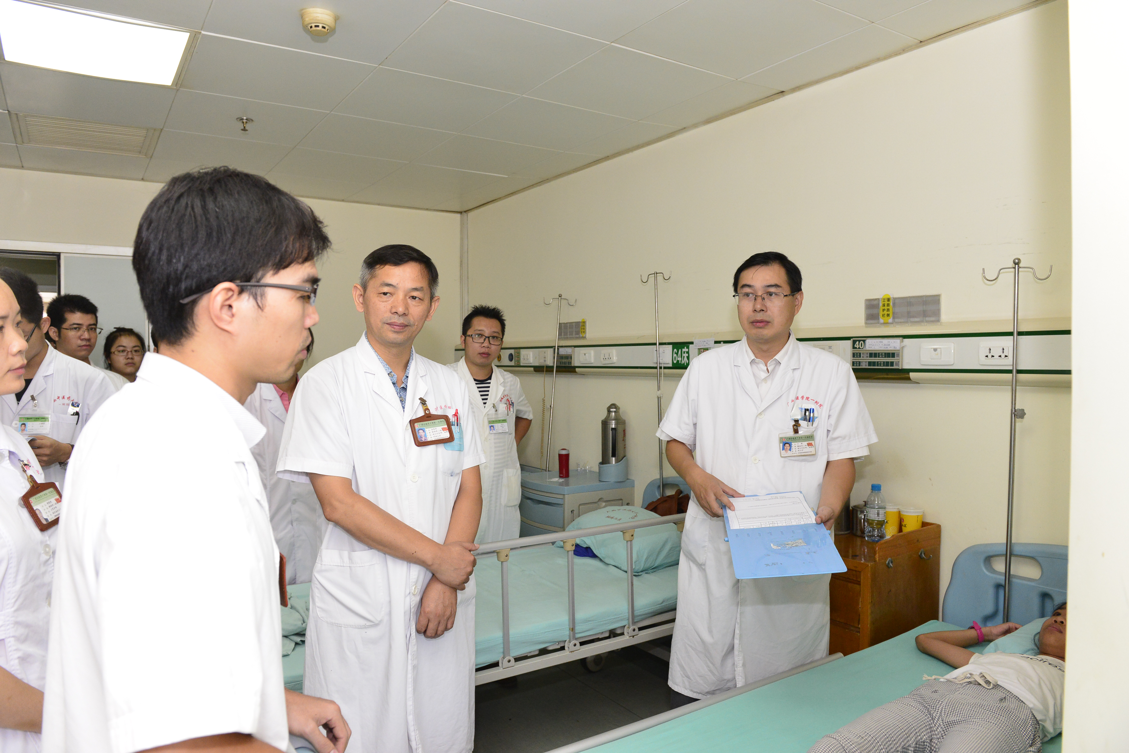 “古老师每天不是在一附院东葛院区就是在仙葫院区,没有一天是休息的,只要他不出差,在南宁每天必定会来一趟科室,每次出差回来,不管多晚都必定回科室看看,甚至有一次刚下飞机就拖着行李箱直接来科室看病人了,如此负责任的态度令我深深的佩服。”