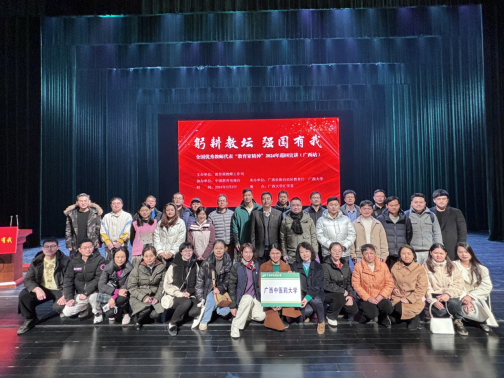 为贯彻落实习近平总书记关于弘扬教育家精神的重要指示精神,做好大力弘扬教育家精神的宣传工作,激励广大人民教师践行教育家精神,3月3日上午,由教育部组织开展的教育家精神2024年巡回宣讲活动(广西站)在广西大学举行。巡回宣讲活动采取“线上+线下”“主报告+分报告”形式开展。我校组织各教学单位(教学部)、黄大年式教师团队教师代表共40名参加了宣讲现场活动,线上活动由各单位、部门组织教职工观看宣讲直播。