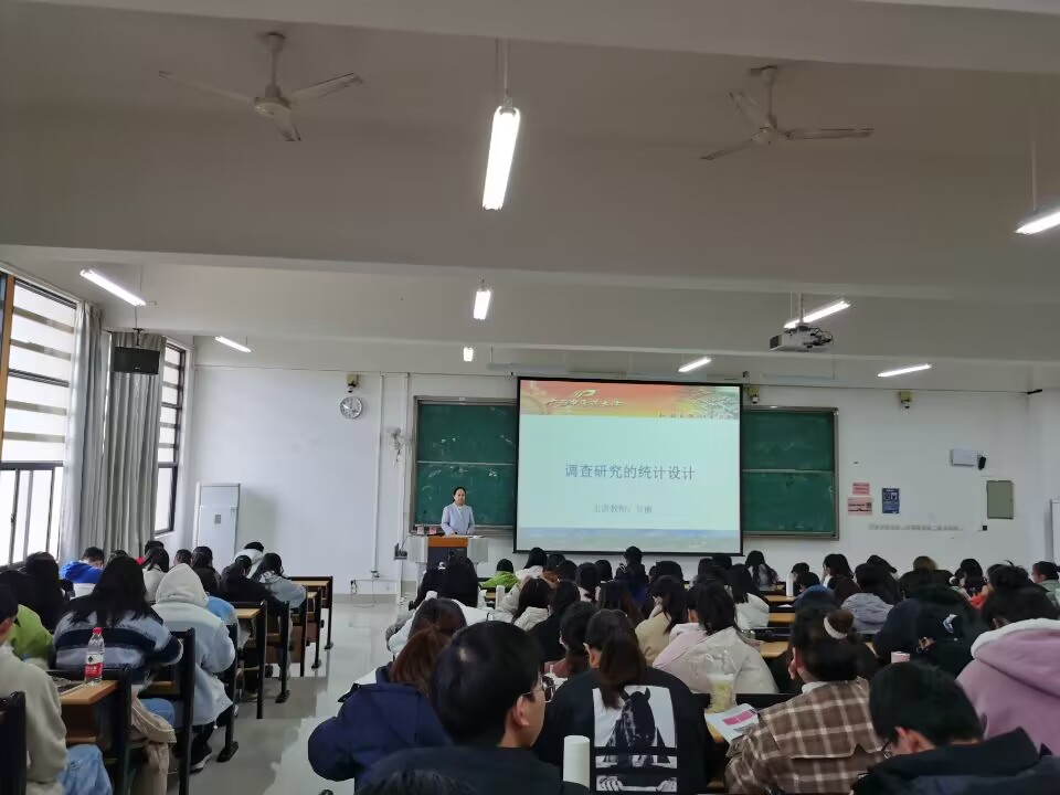 2022年12月3日上午,公共卫生与管理学院生物统计教研室甘丽老师在仙葫校区1-405教室举行《调查研究的统计设计》自诚讲堂。甘丽老师就调查研究中的主要统计问题,包括调查抽样研究的抽样方法、调查研究样本含量的估计方法,调查工具调查量表的质量评价效度、信度等内容与现场同学进行交流学习。中医学、药学、康复医学、预防医学、临床医学、针灸推拿、中医骨伤医学、口腔医学、护理学等专业近150同学参加了讲座,现场气氛热烈。期间,甘丽老师耐心解答同学们在调查研究中遇到的问题及疑惑,让同学们充分认识到系统学习统计方法的必要性。