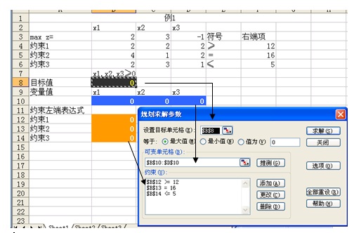 设置目标单元格:一些单元格、具体数值、运算符号的组合。注意:目标单元格一定要是公式,即一定是以“=”开始。类似于线性规划中的目标函数。