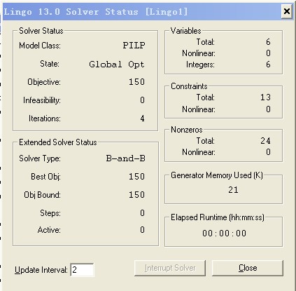 Interrupt Solver   在任何时候按此按钮中断求解器,返回其发现的当前最优解