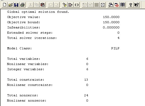 Branches           Lindo的整数规划求解器对整数变量分支的数量。仅与整数规划模型相关