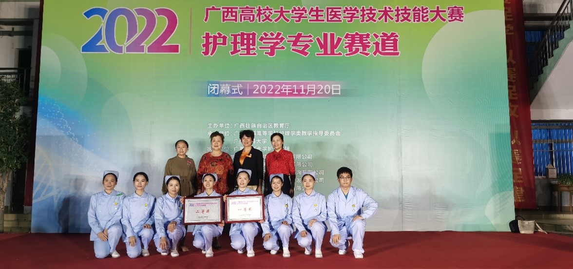 我校代表队在2022年广西高校大学生医学技术技能大赛 (护理学专业赛道)比赛中荣获团体一等奖和二等奖