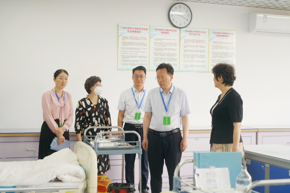 为全面了解本学期护理学院教学运行及新一轮本科星空网页游戏官网审核评估工作的落实情况,5月17日,学校党委书记莫锦荣、党办主任徐方明、教务处处长莫雪妮等一行7人到护理学院开展期中教学检查,本次检查工作包括实地走访、听取汇报、检查材料、座谈会四个方面。