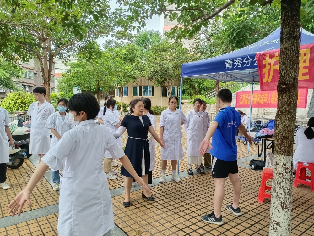 5月28日上午,护理学院学生第四党支部携手学校手法协会在南宁市青秀区八百里小区举行了主题为“爱心义诊进社区,服务百姓零距离”义诊活动。本次活动由学生第四党支部书记蓝红霞带队,支部党员、发展对象、入党积极分子等共64名同学并参加本次义诊活动,为社区近百名民众开展健康服务活动。