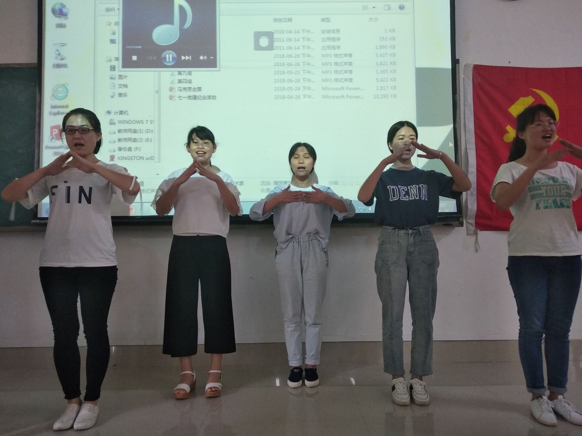 党员同志进行文艺表演,既有赞扬中国共产党激情洋溢的诗歌朗诵,又有优美动听中略带激昂的歌唱,展现当代大学生党员的良好精神面貌、表现励志向上的爱国热情,并以此来纪念中国共产党建党97周年。最后,纪念大会伴着《歌唱祖国》歌声中,隆重落下帷幕。