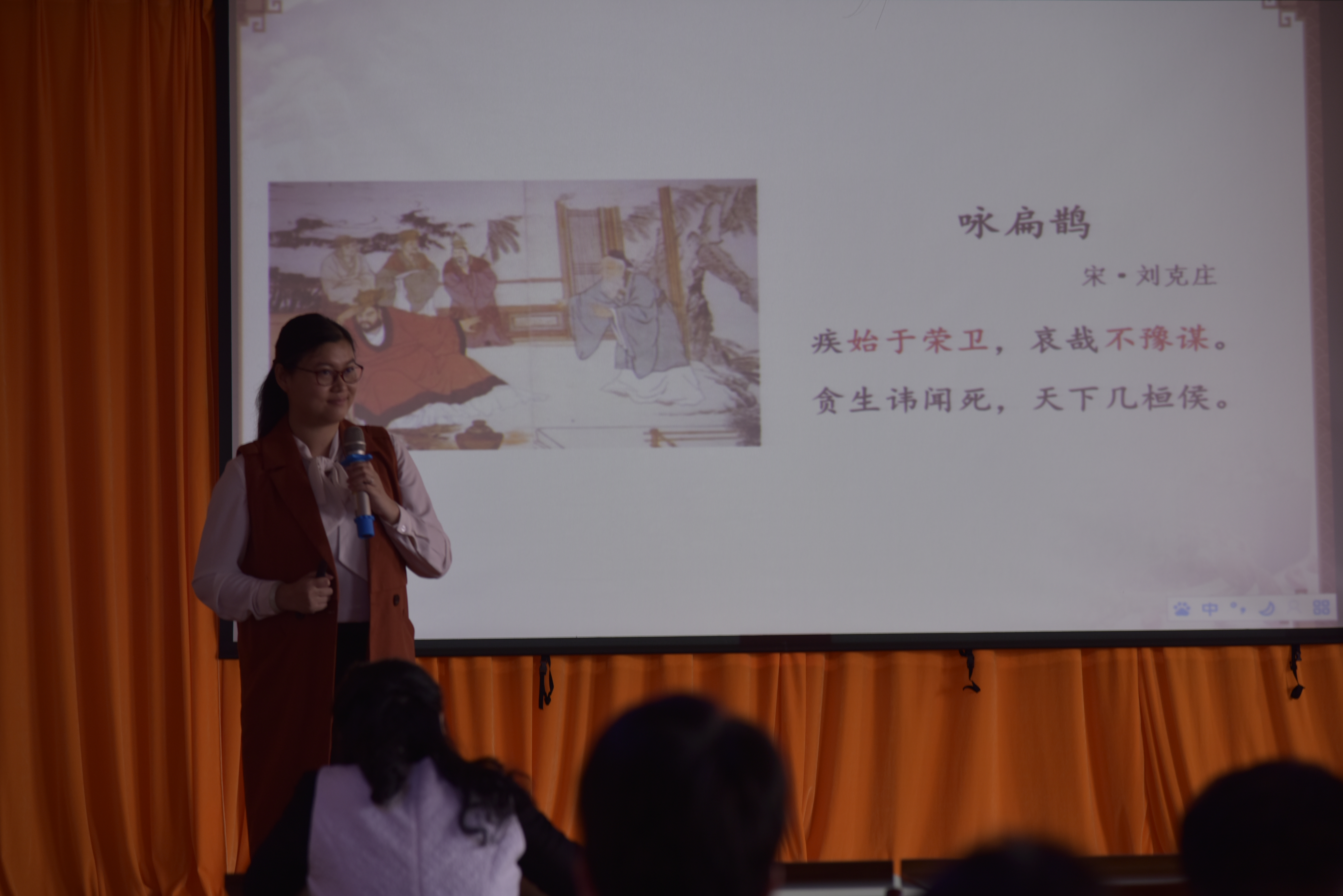 示范课的授课内容设计合理、重点突出、讲解生动、引人入胜,赢得了台下老师们的阵阵掌声。
