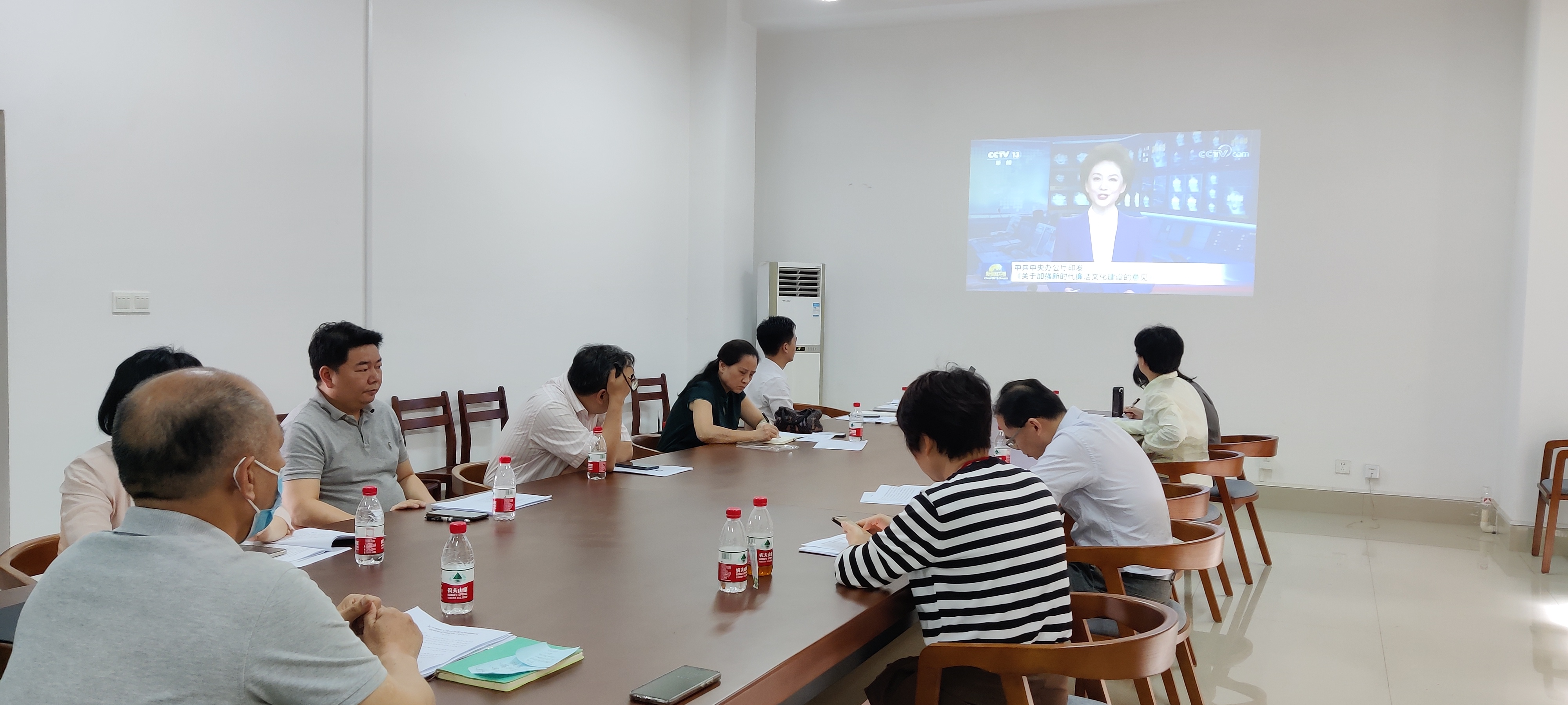 接着,参会人员视频学习了中共中央办公厅印发《关于加强新时代廉洁文化建设的意见》,集体观看了电视专题片《零容忍》(节选)。围绕廉政建设主题,中心组成员依次作交流研讨发言。