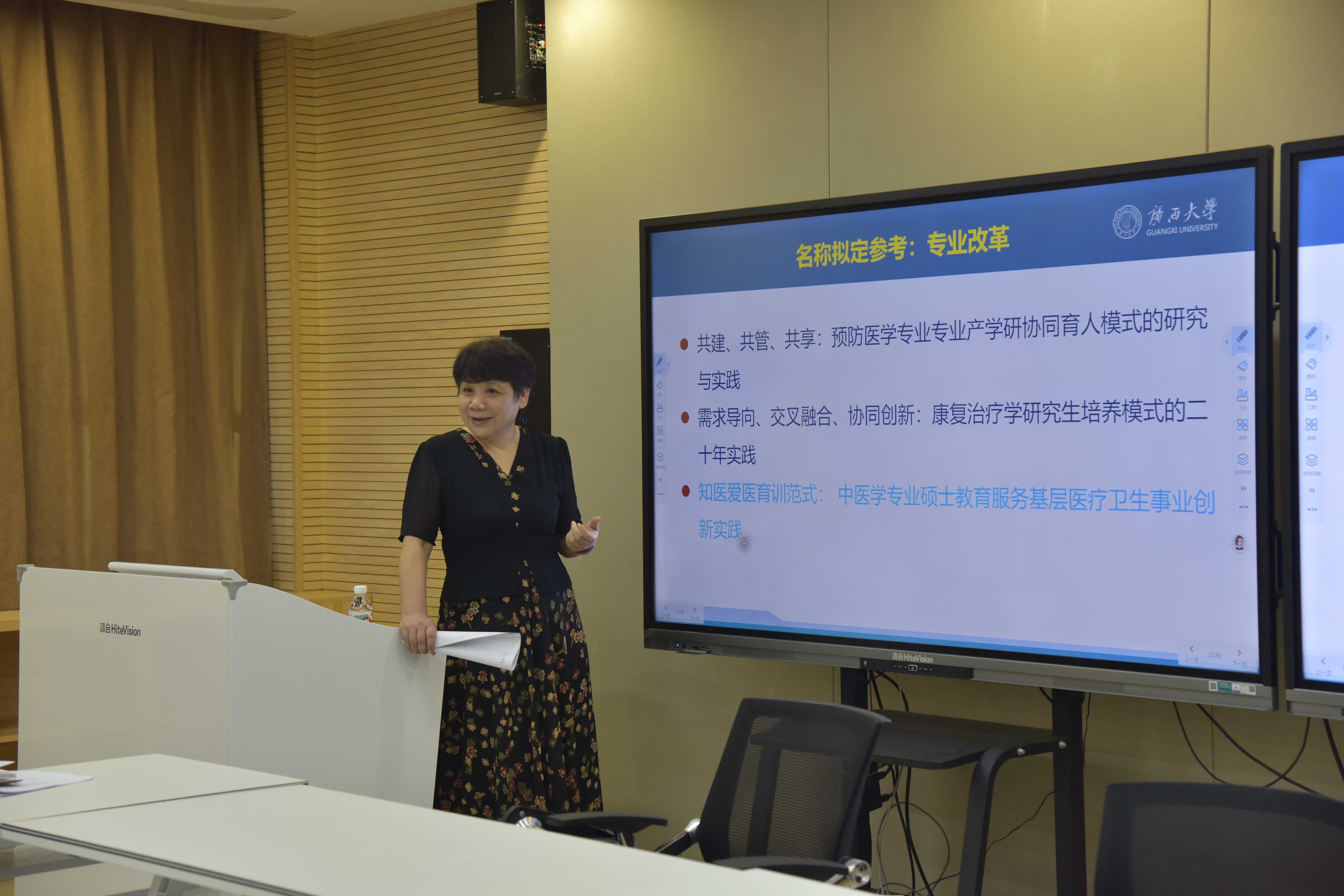 为进一步提升教师教学成果奖申报质量,助力教师专业发展,基础医学院教师教学发展分中心于5月16日下午在达道楼B318智慧教室开展了“教学成果奖申报与建设专题指导”培训活动。本次活动特邀广西大学二级教授、博士生导师曾冬梅教授担任主讲嘉宾,吸引了众多教师前来参加。