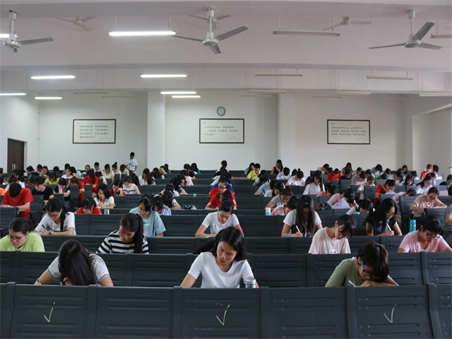 初赛吸引了包括基础医学院、药学院、赛恩斯新医药学院、针灸推拿学院、护理学院、壮医药学院等学院的学生,共668人参加。初赛形式为笔试,同学以个人为单位参赛。题目类型包括:根据汉字写拼音、根据拼音写汉字、根据文意选择词语、繁体字或异体字转化为简体字、补填有关医药成语等。考试内容来自医古文、中药学、方剂学、内经选读、伤寒论、中医诊断学等多门中医课程,充分、全面考查了同学们对于中医药汉字的理解和认读水平。初赛现场秩序井然,工作人员引导参赛选手入座并分发试卷。考试开始后,考生们低头沉思,奋笔疾书。
