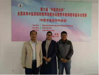 2018年11月23-25日,第六届“中医药社杯”全国高等中医药院校青年教师教学基本功竞赛在贵阳中医学院举行,来自全国35所开设中医学专业的院校175名青年教师参赛。我校选派基础医学院、第一临床医学院、瑞康临床医学院6位青年教师参加此次竞赛,医古文教研室李晓梅讲师参加了中医基础初中级组的竞赛。