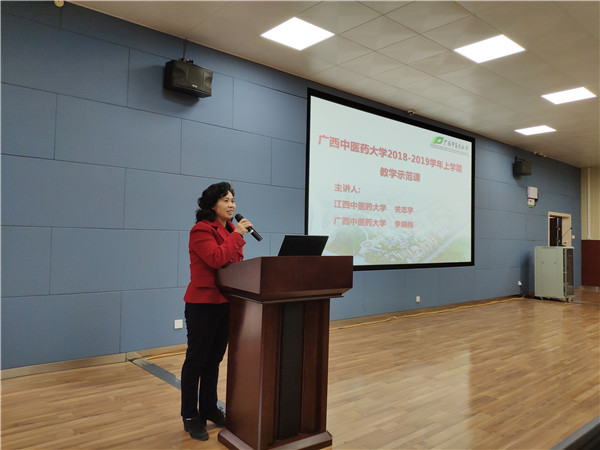 12月13日上午,我校2018~2019 学年上学期教学示范课活动在仙葫校区1-101教师报告厅举行。第六届“中医药社杯”全国高等中医药院校青年教师教学基本功竞赛二等奖获得者、医古文教研室李晓梅老师进行教学示范及经验分享。约320名教师到场观摩。
