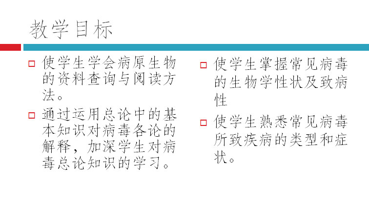 (1)教学目标:学生读懂生物性状、致病性、用总论内容去解释各论内容。