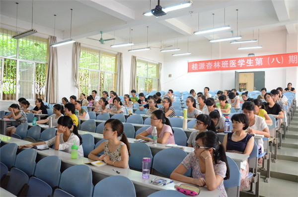 2015年6月18日下午,第一临床医学院在明秀校区教学楼西B1教室举办了桂派杏林师承班学生第八期研修论坛。旨在培养桂派杏林师承班学生的中医辨证与临床思维,了解更多中医的发展现状。