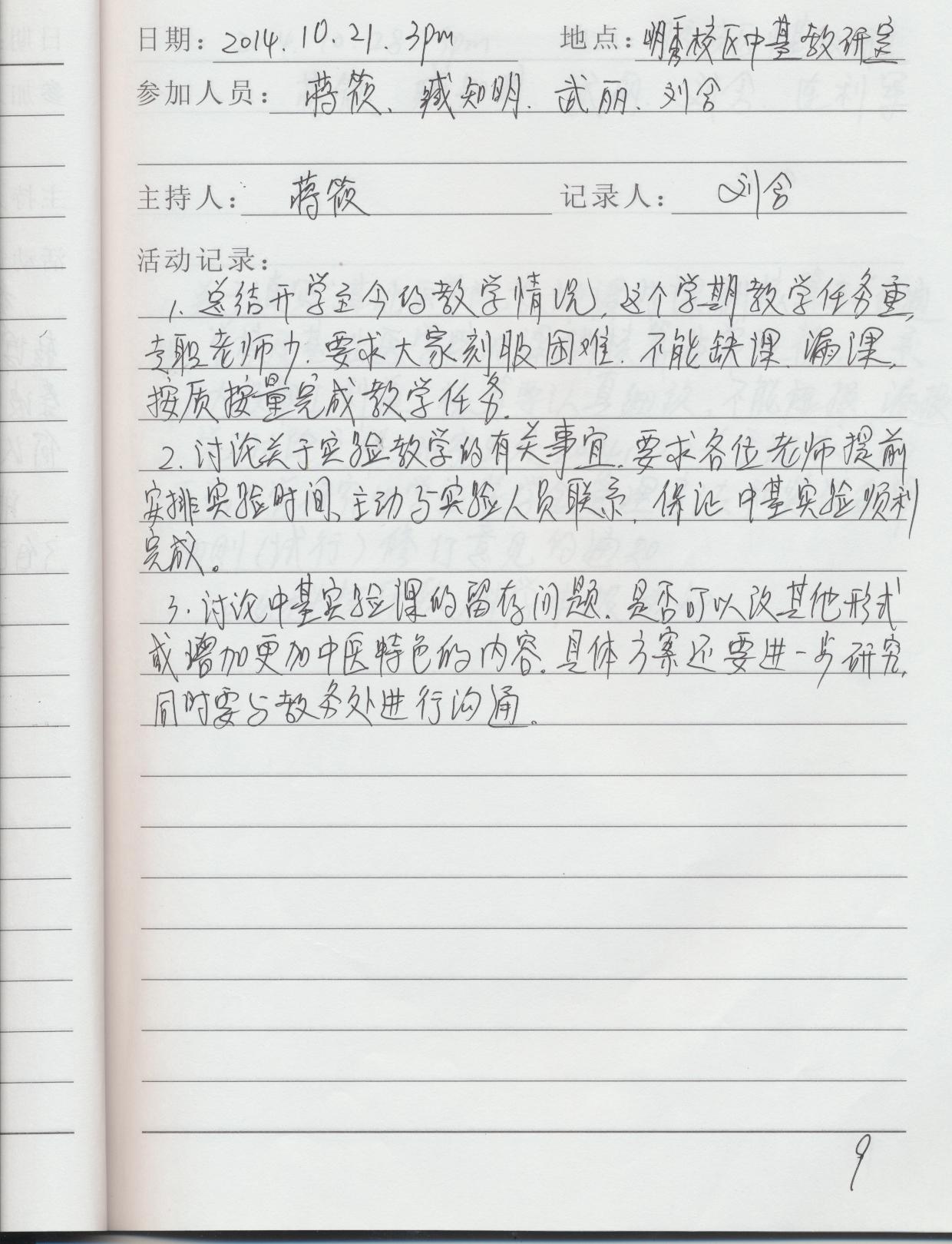 中基教研室2014-2015学年上学期教研室活动记录