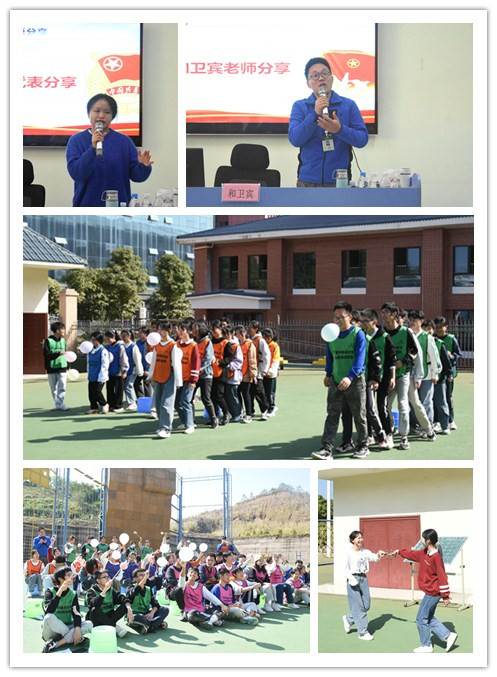 活动在青春嘹亮的共青团团歌声中拉开帷幕。基础医学院团委、学生会2019级成员代表分别进行工作分享,他们分别从为什么做学生干部、如何做好学生干部、工作责任心、工作态度等方面,结合自身经历感受,通过具体工作案例,向在座的团学成员进行全面讲述。其次,和卫宾老师重点从如何做好我院团学工作,我院团学工作存在的不足以及改进建议等,通过相关调查数据,师生反馈以及成员间感受等,对团学工作进行详细和全面分析;同时在分享过程中不断抛出问题,引发成员们思考,解决和改进工作中实际问题。然后,和卫宾老师为了增进成员对于压力认识,提高大家对压力调整能力,组织和带领大家进行一场关于“击破压力”的团建心理活动。在活动中,和卫宾老师通过言语引导,有趣设计,切实体验,给大家进行一场有趣生动且深刻的活动。最后,成员各组进行素拓游戏比拼和才艺表演,通过一项项活动,来增进大家认识,提升大家凝聚力,培养团结协作,不怕困难意志品质。