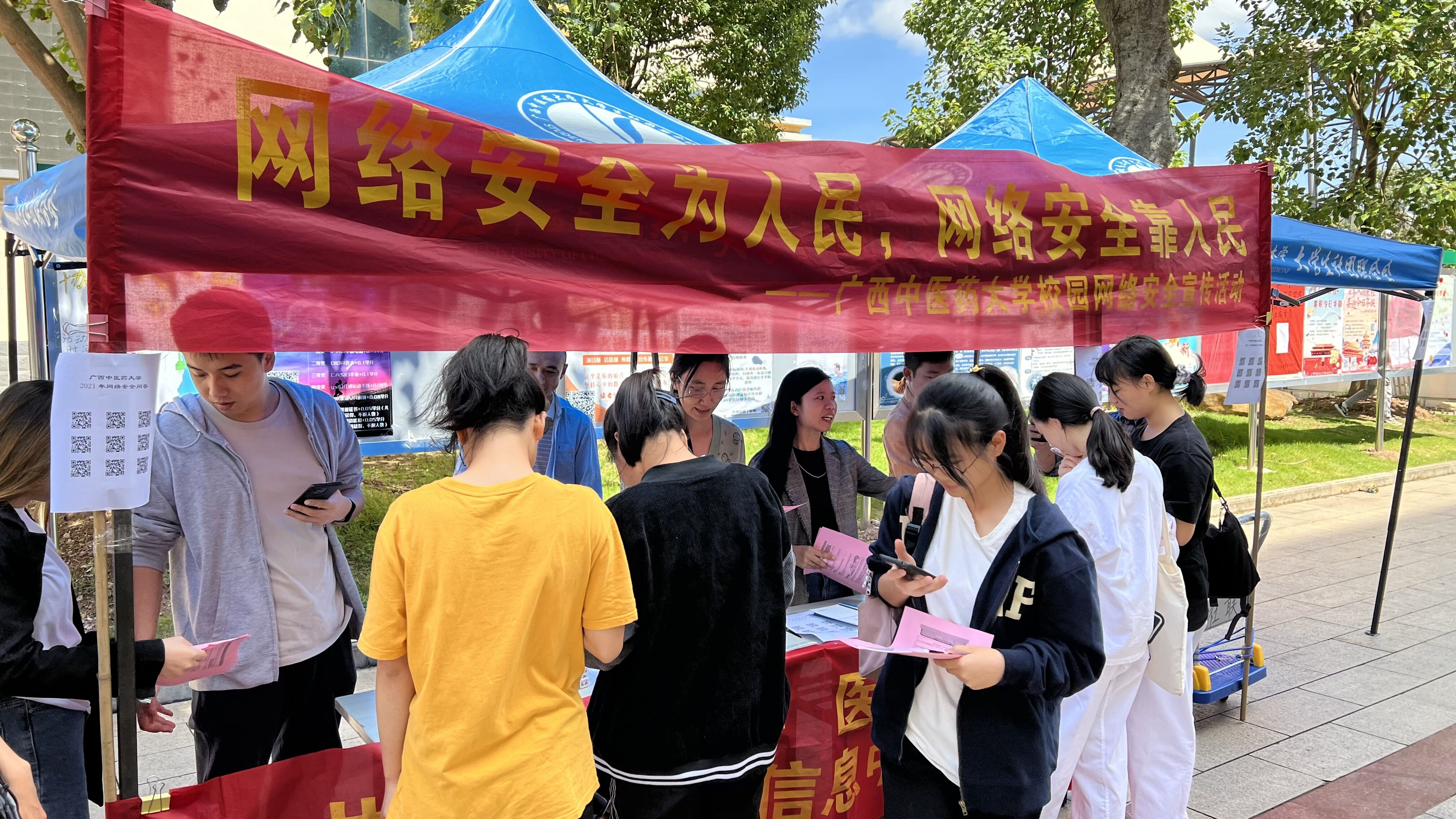 此次活动以“网络安全为人民,网络安全靠人民”为主题,通过向师生发放网络安全宣传资料、网络安全知识有奖答题、学校室外大屏轮播网络安全事件短视频等多种形式展开。活动现场气氛热烈,广大师生积极参与网络安全知识答题,并就日常生活中遇到的网络安全问题进行了解答。