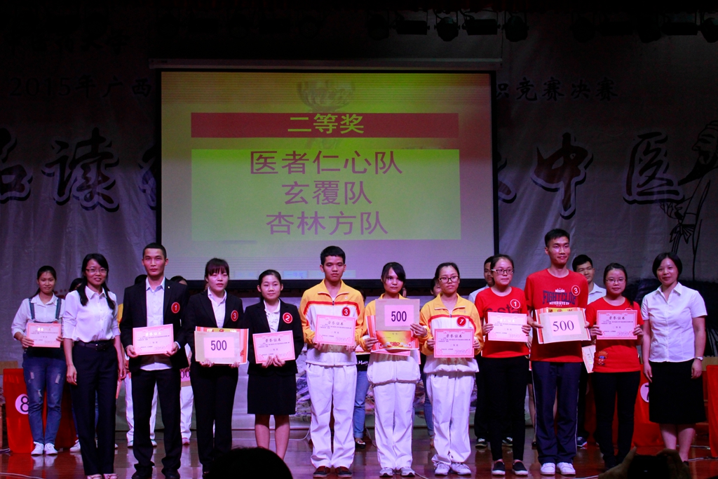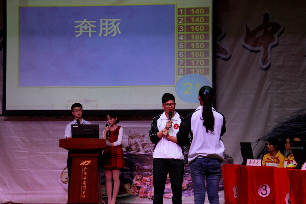比赛由校团委主办,基础医学院协办,校学生会承办;决赛在八支参赛队伍的开场秀中拉开了帷幕。接着各参赛队伍进行了晋级赛,包括必答题以及别开生面的猜词题和抢答题,决出了前四名。再由前四名进行挑战题和风险题的比拼,一决胜负。比赛期间掌声迭起,高潮不断。观众互动环节更是把比赛推向了又一个高潮。各参赛队在友好热烈的气氛中完成了比赛。最后,依照各参赛队伍的积分进行排名,“坎卦”队以250分的高分位居榜首。评委对各队伍的表现都进行了精彩的点评,并鼓励同学们加强对中医经典知识的掌握,鼓励中医、中西医结合工作者学习和钻研中医经典,夯实中医理论基础知识,促进临床水平的提高,从而更好地发挥在临床上的骨干作用,进一步提高我院中医药队伍的整体素质。