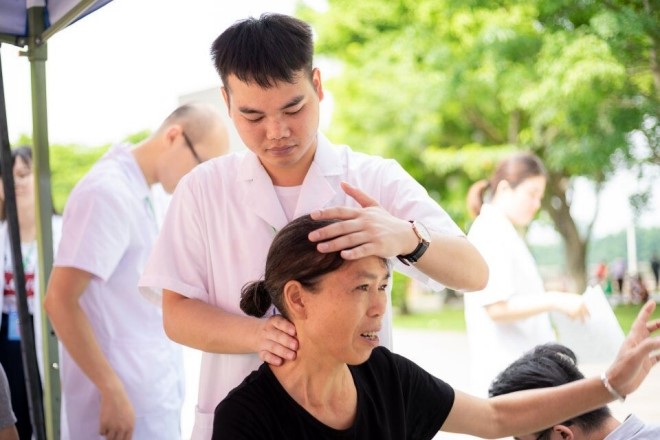 8月7日,我校2018级研究生学院“岐黄义诊小分队”选择在广西南宁市西乡塘区衡阳街道中华中路社区,开展以“青春心向党,建功新时代”为主题的暑期社会实践活动。当天小队各成员按时到达义诊地点,对场地进行简单布置后,小组员们对人来人往的居民进行针灸、推拿、耳穴、健康宣教等中医特色项目,安排人员进行拍照,记录活动精彩瞬间。