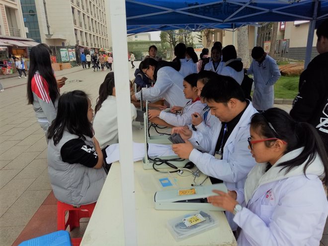 即便天气寒冷,许多同学依旧不畏寒风来参与我们的义诊活动,要知道在这样的天气露出手臂量血压也是需要勇气的,让我们为这些勇者们点赞!
