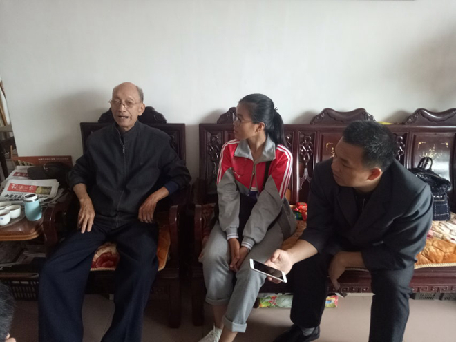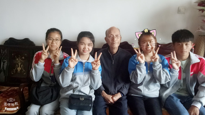 苍苍白发,昔日风雨已成往事,区辂同志、孙国藩同志对同学们的慰问表示由衷感谢。老人们为同学们讲述了抗战时期的艰辛和难忘的经历,使同学们更加体会到了当今幸福生活来之不易。两位老人坚定的爱国信念触动着在场每位同学的心弦。