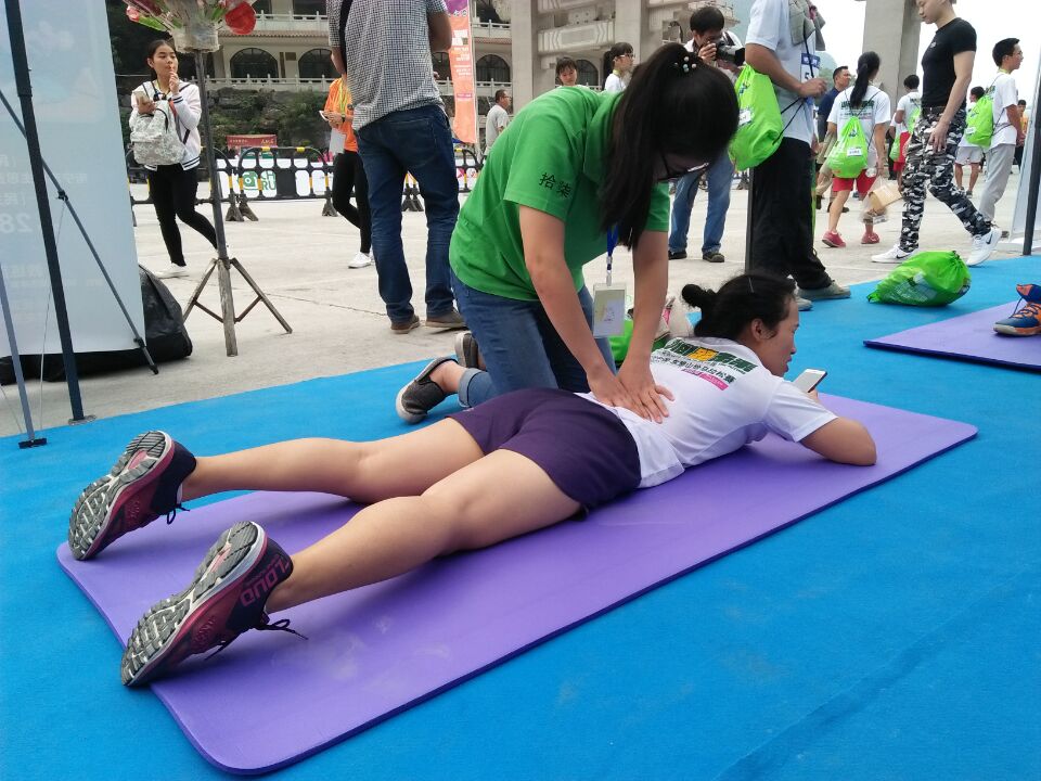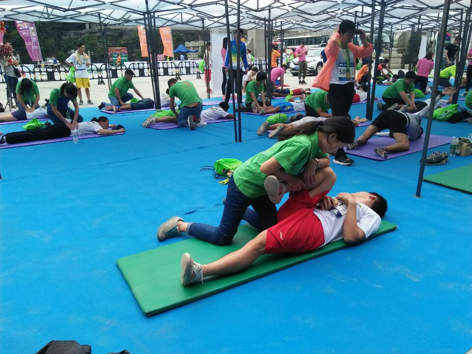 由于路途遥远,手法医学协会的小伙伴们是于黎明破晓之际出发的,经过三小时的舟车劳顿,来到了马山,大概十点之时就开始了为第一个赛程结束的运动健儿进行手法放松了。