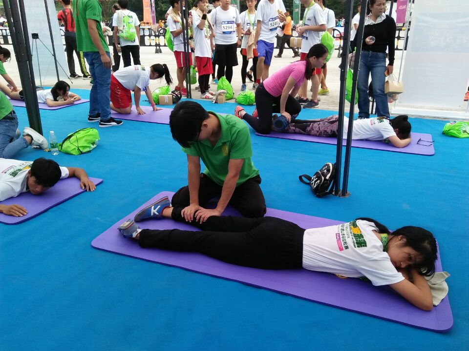 正因如此,过来进行手法放松的人更是络绎不绝,手法医学协会的小伙伴们更是忙得不可开交。即便如此,他们仍然面带微笑,尽自己最大的努力为运动健儿提供最好的手法放松。下午五点历经七个小时的义诊结束,小伙伴们都已筋疲力竭,但是每个人心中都塞满了满满的喜悦。