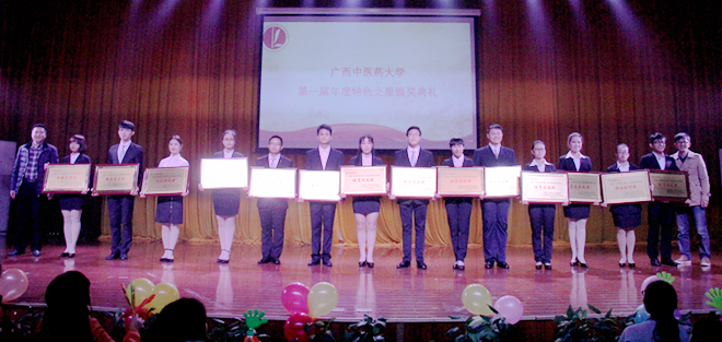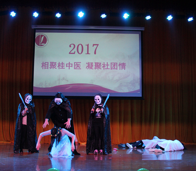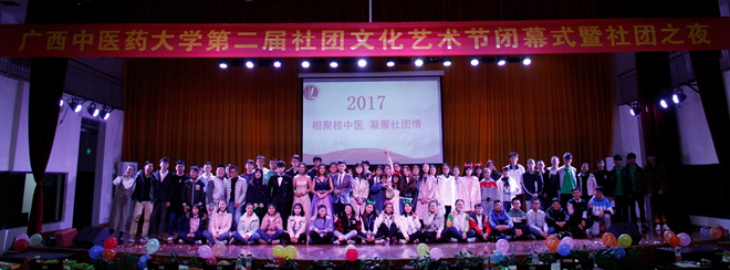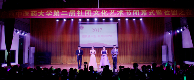 2017年11月25日晚,由大学生社团联合会主办的以“相聚桂中医,凝聚社团情”的社团之夜于我校仙葫校区大学生活动中心小礼堂举办。应邀出席的嘉宾有团委副书记杨删老师、团委社会实践部部长陈晓东老师以及各大高校的代表。