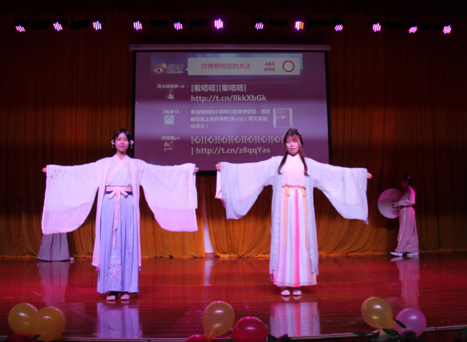 节目正式开始,舞蹈健美协会的街舞《keep on dancing》其震撼的节奏奏响我们的热血与激情、青囊汉服兴趣小组的古典舞《风华录》与汉服展示为我们带来了古风古韵的视觉盛筵、梵灵瑜伽兴趣小组带来的《逆流的鱼》没有嘈杂的音乐也没有激烈的动作但有涤荡心灵的力量……晚会集合了歌舞、情景剧等形式,可谓异彩纷呈。与以往不同的是此次社团之夜新增了抽奖活动观众对此的热情颇高,整台晚会的欢呼声一阵高过一阵。