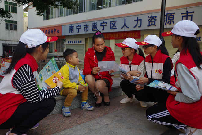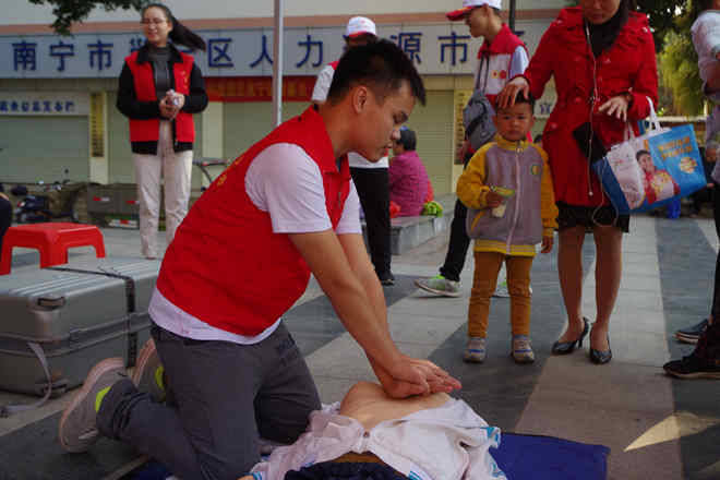 2018年11月3日9点,我校红十字会于新兴社区进行义诊,围绕“爱满邕城,‘救’在心中”为主题服务新兴社区的居民。