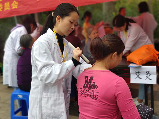 志愿者为居民艾灸