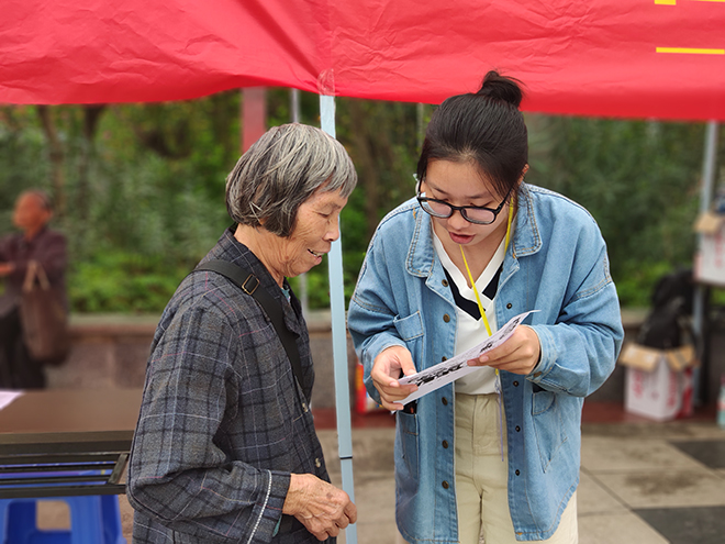 志愿者为居民测量血压