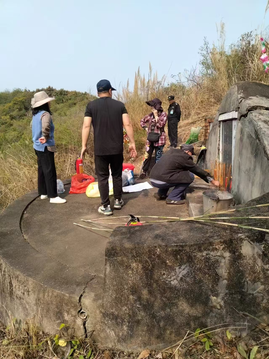 清明节前一周,学校对祭扫区域及周边开展全面消防安全隐患排查,重点维护灭火器材并科学布设,同时制定详细的消防安全应急预案,组织相关人员熟悉应急处置流程,确保应急响应能力。清明节期间,学校强化消防安全宣传引导,在校园入口处设置防火宣传点,向进校上山扫墓人员普及森林防火知识和文明祭扫理念。武装部(保卫处)工作人员全程跟踪引导,倡导安全文明祭扫,从源头上减少火灾隐患。同时,学校增派安保力量每隔30分钟对祭扫区域进行不间断巡逻,安排专人携带灭火设备全程陪同祭扫,及时劝阻烧纸、燃香等危险行为。