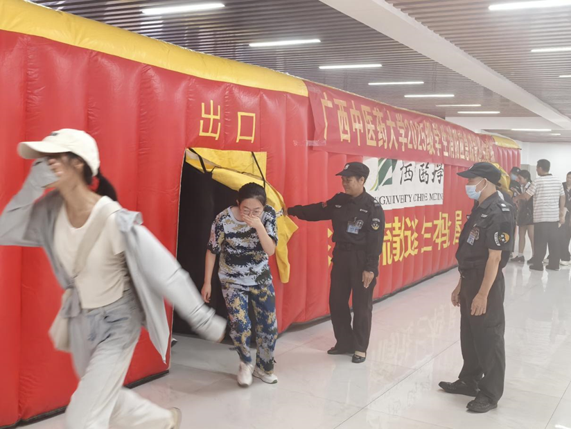 在消防安全知识讲座暨应急疏散逃生演练环节,广西消安安全服务中心资深讲师陈辉为新生现场授课。他结合近年来高校和社会的典型火灾案例,以触目惊心的影像资料和生动的讲解向同学们详细剖析了火灾的严重危害、常见起火原因以及初起火灾的扑救方法。随后在工作人员的指引下,全体新生按照预定疏散路线,快速、有序地完成应急疏散逃生演练和灭火器实操。整个过程紧张有序、忙而不乱,达到了预期效果。