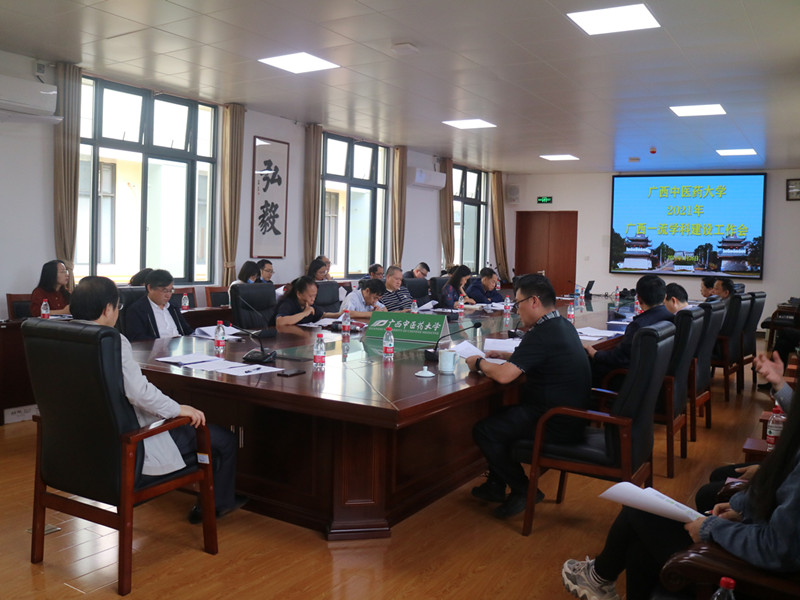 学科建设办公室主任吴林总结我校2021年广西一流学科建设整体情况和分析各项任务指标完成的难易程度,各依托学院就一流学科任务指标完成的困难与解决方案展开了讨论。