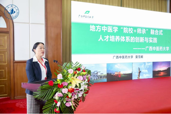 发展规划处处长莫雪妮教授作题为《地方中医学“院校+师承”融合式人才培养体系创新与实践》的报告