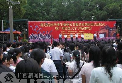 广西人才市场工作人员告诉记者,自治区人事系统服务经济发展、促进高校毕业生就业工作系列活动在进入广西民族大学后,还将进入广西大学、广西医科大学、广西师范学院等13所区内高校举行。