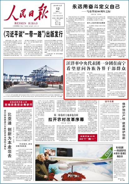 【人民日报】汪洋率中央代表团一分团在南宁看望慰问各族各界干部群众
