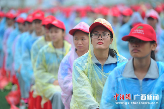 图为学生在参加星空彩票老版本下载恢复办学60周年纪念大会。