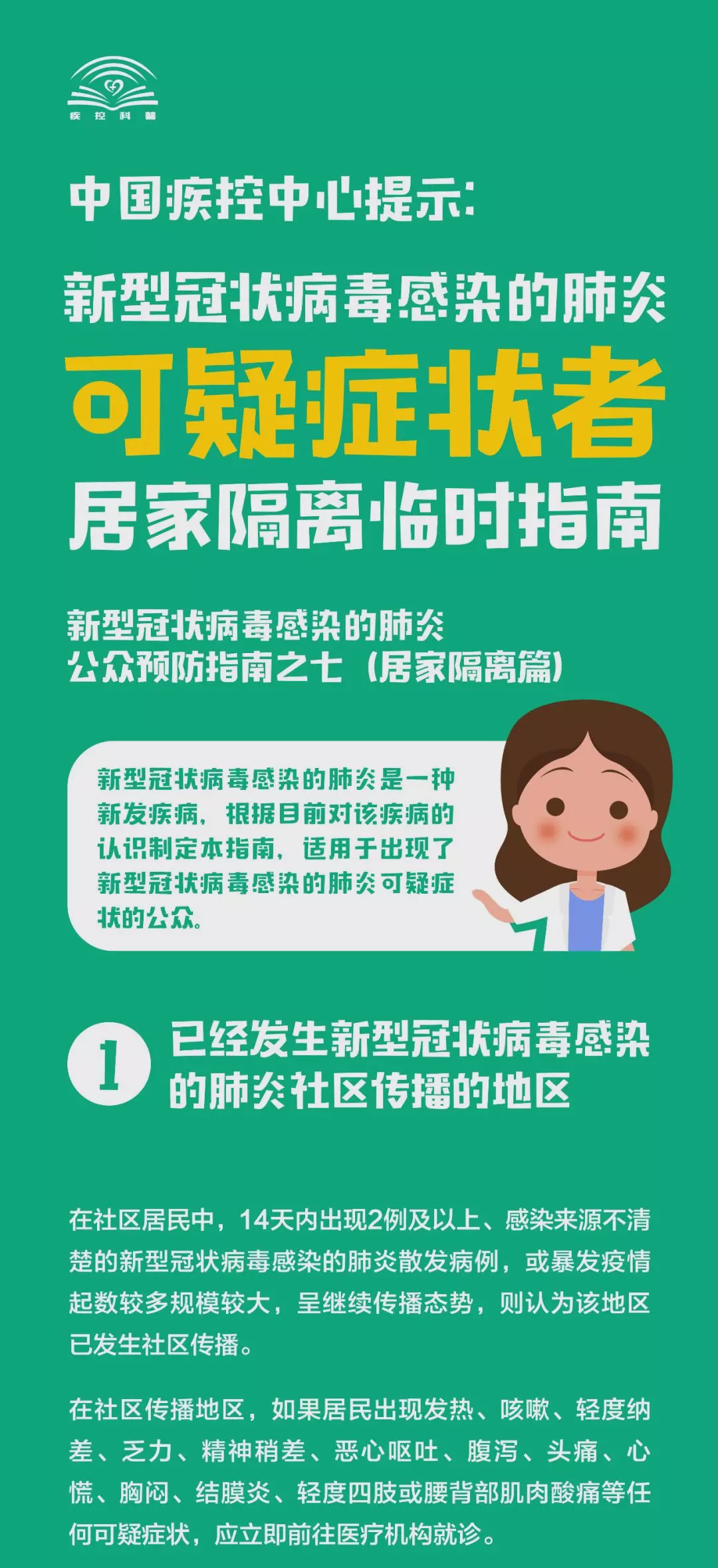 3.居家隔离观察期间,如您出现发热、干咳、气促等异常临床症状时,请第一时间告知联络员,将由定点医疗卫生机构为您诊治,或由您的家人送往就近医疗机构的发热门诊就诊。