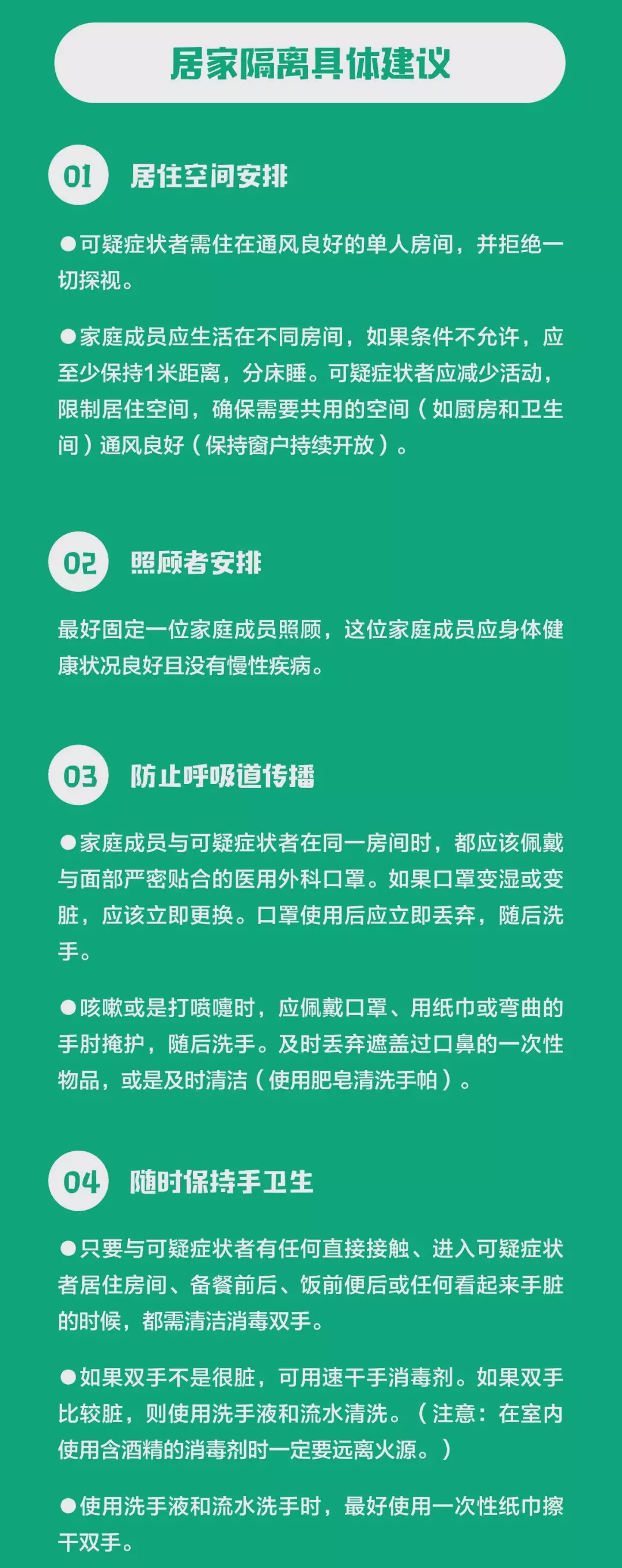 1.实施居家隔离观察时,请您保持相对独立的居住环境,尽可能减少与共同居住人员的接触,最大限度减少不必要的外出。